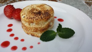 型に絞ってチョコの入ったアイスを入れ、冷凍庫で冷やしておいて食べる直前にバーナーでこんがり焼き色を付けます。